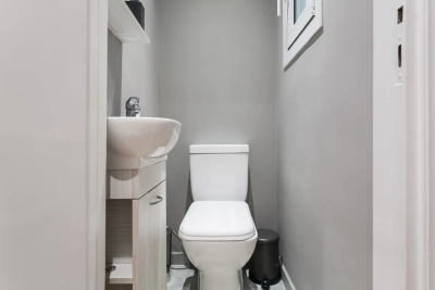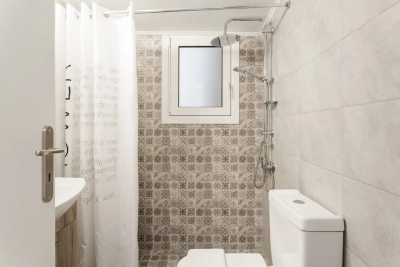 WCΤα κουφώματα είναι αλουμνίου, με διπλά τζάμια.